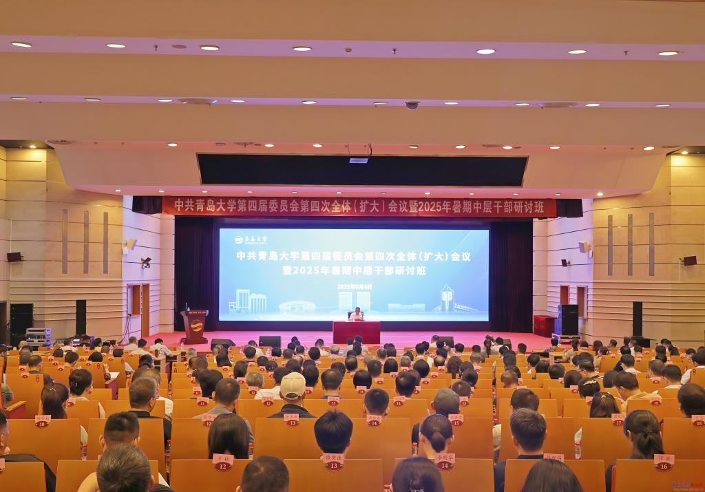 新闻网讯 9月4日至5日,中共青岛大学第四届委员会第四次全体(扩大)会议暨2025年暑期中层干部研讨班在国际交流中心博学厅召开。校领导胡金焱、魏志强、肖江南、陈涛、李荣贵、刘恩贤、何燕、李建波、牛海涛、吴世珍、张守珩出席会议。