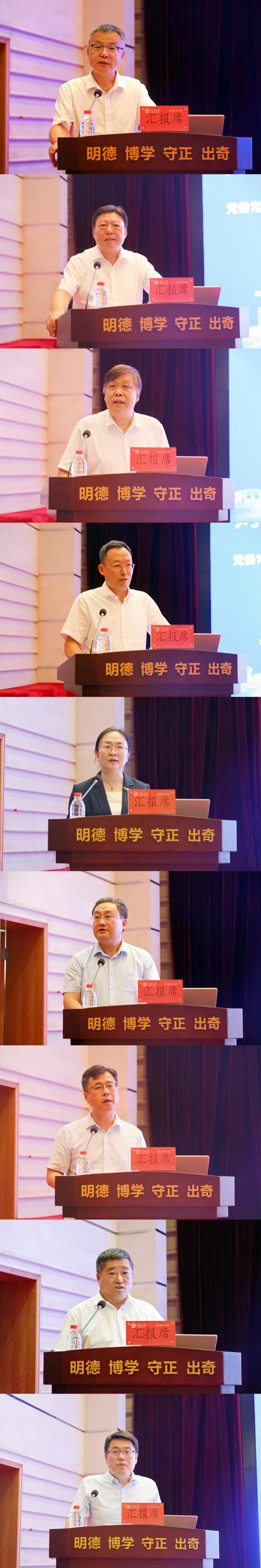 会上,校党委副书记肖江南作《完善“大统战”工作格局,助推学校事业高质量发展》专题报告;校党委常委、副校长陈涛作《明确目标,精准施策--着力构建高质量就业服务保障体系》专题报告;副校长李荣贵作《坚持一流标准,做顶天立地科研》专题报告;校党委常委、副校长刘恩贤作《狠抓高水平组织,力促高质量发展--全面做好“十五五”发展规划与教育强省建设规划纲要落实方案编制工作》专题报告;校党委常委、副校长何燕作《“开源·节流·治理·创新”--促进学校事业高质量发展》专题报告;校党委常委、副校长李建波作《聚焦高质量发展,构建服务国家战略与区域发展的学科专业新生态》专题报告;校党委常委、副校长牛海涛作《滚石上山,爬坡过坎--“十五五”重塑“医学+”发展新格局》;校党委常委、宣传部部长吴世珍作《全面落实意识形态工作责任制,筑牢意识形态安全防线》专题报告;校党委常委、组织部部长张守珩作《“破局·焕新·跃升”--加快锻造一支引领学校事业转型发展、创新发展、突破发展的高素质干部队伍》专题报告。