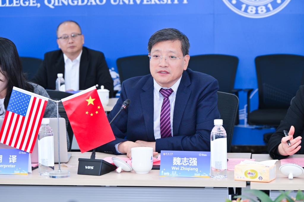 魏志强指出,德雷克联合学院不仅是两校友谊的象征,更是青岛大学推动教育开放、深化国际合作的生动实践,是双方携手打造的高水平国际化人才培养新高地。他强调,双方应秉持携手共进、互信互助的合作精神,在面对挑战时共同研究、协同应对,不断推动联合学院在务实合作中成长、在创新探索中提升。期待未来通过两校一流的合作,一流的行动,打造一流的中外合作办学机构,将联合学院建设成为中美教育交流与合作的标杆与典范,为国际教育合作提供可复制、可推广的“青大样本”。